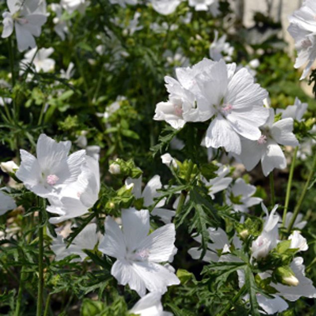 Setzen Sie auf Malva moschata alba für eine bienenfreundliche, duftende und elegante Gartengestaltung!