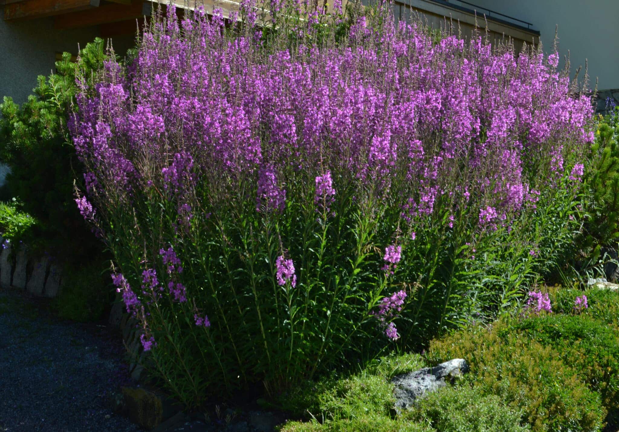 Das attraktive Schlag-Weidenröschen (Epilobium angustifolium) blüht ab August, gerne auch in den Herbst hinein.
