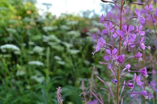 Das attraktive Schlag-Weidenröschen (Epilobium angustifolium) blüht ab August, gerne auch in den Herbst hinein.